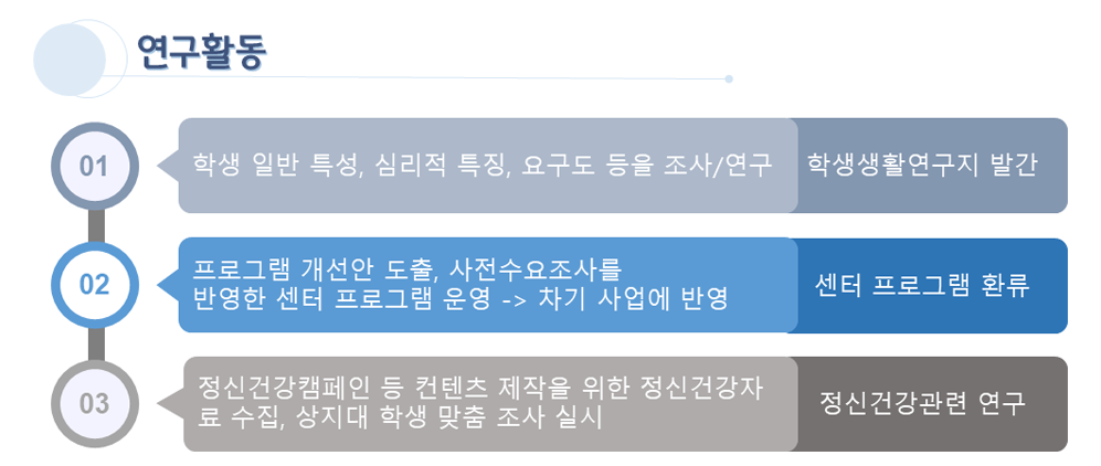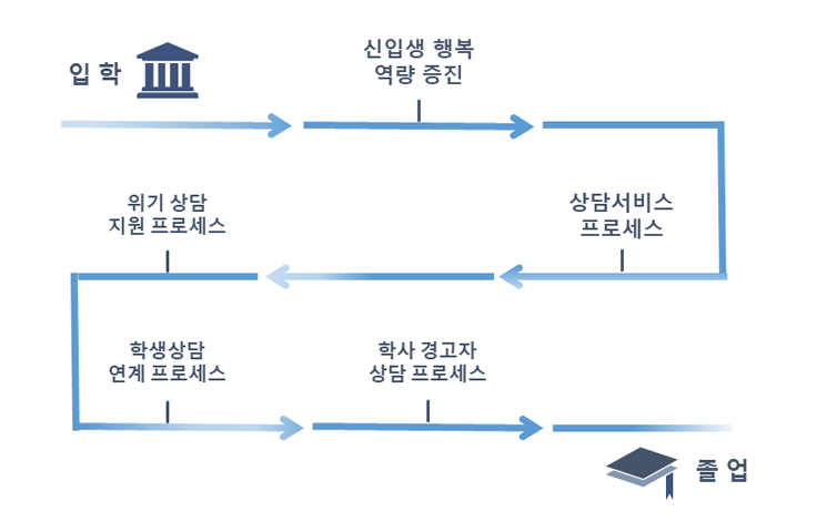 - 입학부터 졸업까지 마음건강지원체계를 중심으로 체계적이고 일관적인 상담서비스 제공
