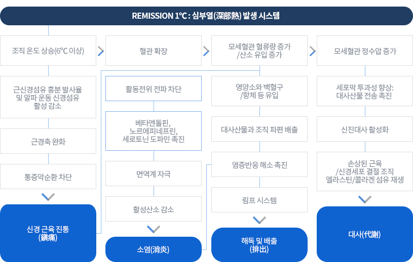 온열암치료는 조직온도를 상승시켜 근신경섬유의 흥분과 운동신경의 활성을 감소시켜줌으로써 통증을 직접적으로 억제해주며, 혈관을 확장시켜 대사를 촉진하고 항염효과를 통해 통증을 일으키는 염증물질을 감소시켜줍니다.
