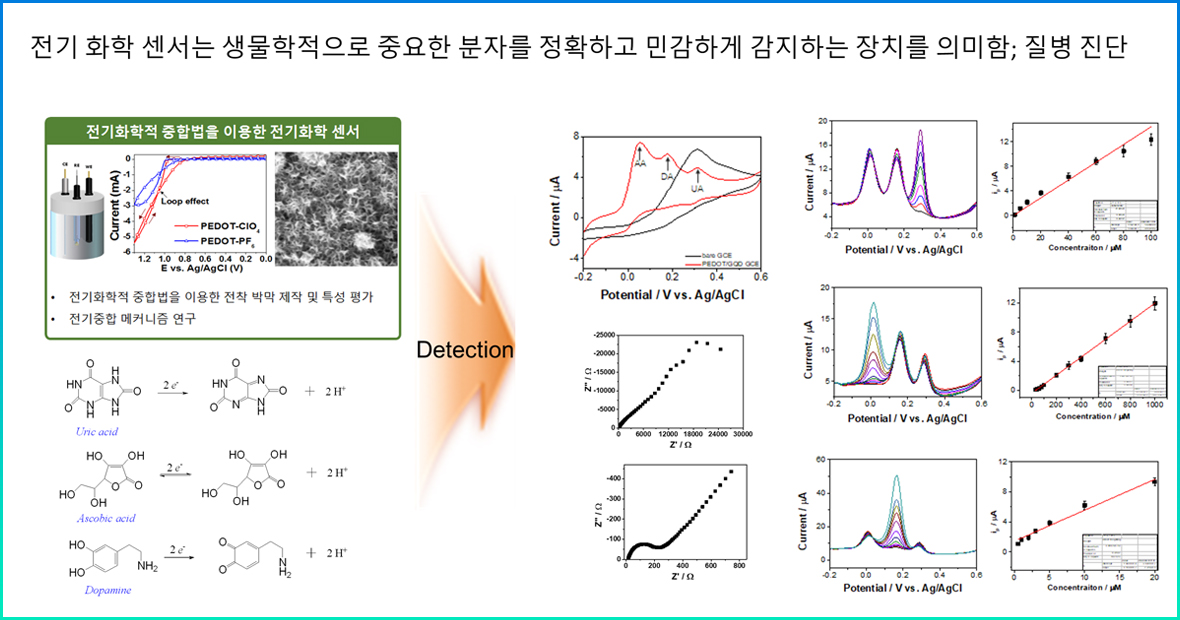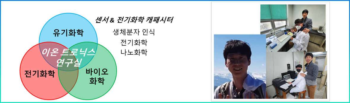 오늘날 눈부신 속도로 첨단과학(기술)이 발달하고 있지만, 여전히 21세기 인류는 에너지(Energy), 질병(Disease), 기후변화(Climate change) 문제에 직면하고 있습니다. 이러한 문제들을 해결하기 위해 본 연구실에서는 전기화학반응에 기반한 분자인식 센서 및 에너지저장시스템에 대해 연구하고 있습니다. 이를 통해, 간단한 물질합성 및 화학분석장비의 조작방법을 직접 익힐 수 있도록 지도하고 전문인력을 양성하고자 합니다.
