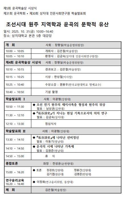 문의: 상지대학교 인문사회연구원 (033-730-0580)